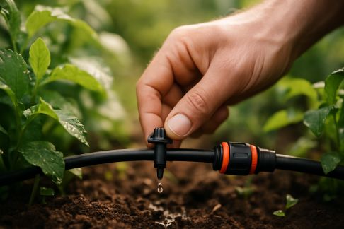 - Collecte de pluie sur la cabane à outils + goutte-à-goutte enterré : solution idéale sur petit terrain, associant récupération et arrosage ciblé à faible perte.