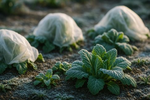 - Toile de jute, cartons ou nattes de roseaux : posés le soir sur le jeune plant, retirés le matin, ils coupent du froid intense tout en laissant respirer la plante.