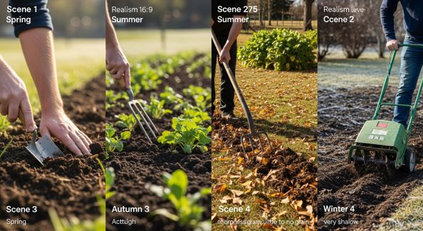 - Limiter le travail profond : préférez le griffage de surface à la bêche pour ne pas casser la structure ni exposer la terre nue au dessèchement.